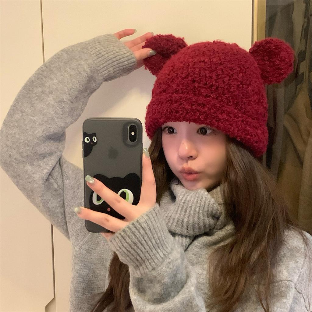 Soft Glutinous Cute Handmade Ears Bear Hat Women's Autumn and Winter Warm Curling Ear Protector Wool Hat