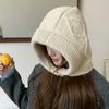 Wool Knitted Large Version Balaclava Hat Women's Warm Coarse Linen Pattern Horn Buckle Ear Protector Pullover Hat