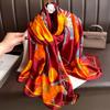 Lijin Wrought Long Scarf Oil Painting Flower Print Long Silk Scarf Spring and Autumn Premium Feeling Scarf