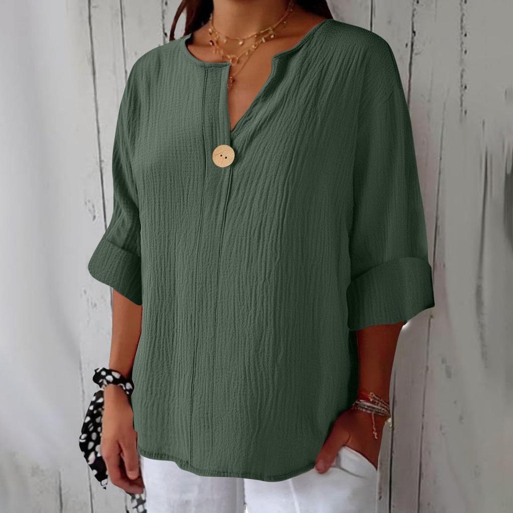 Womens 3/4 Sleeve Summer Tops Cotton Shirts Plus Size Loose Fit Button V Neck Blouses