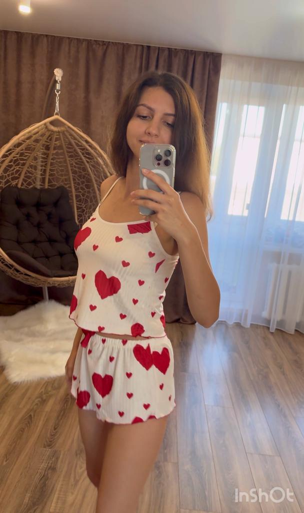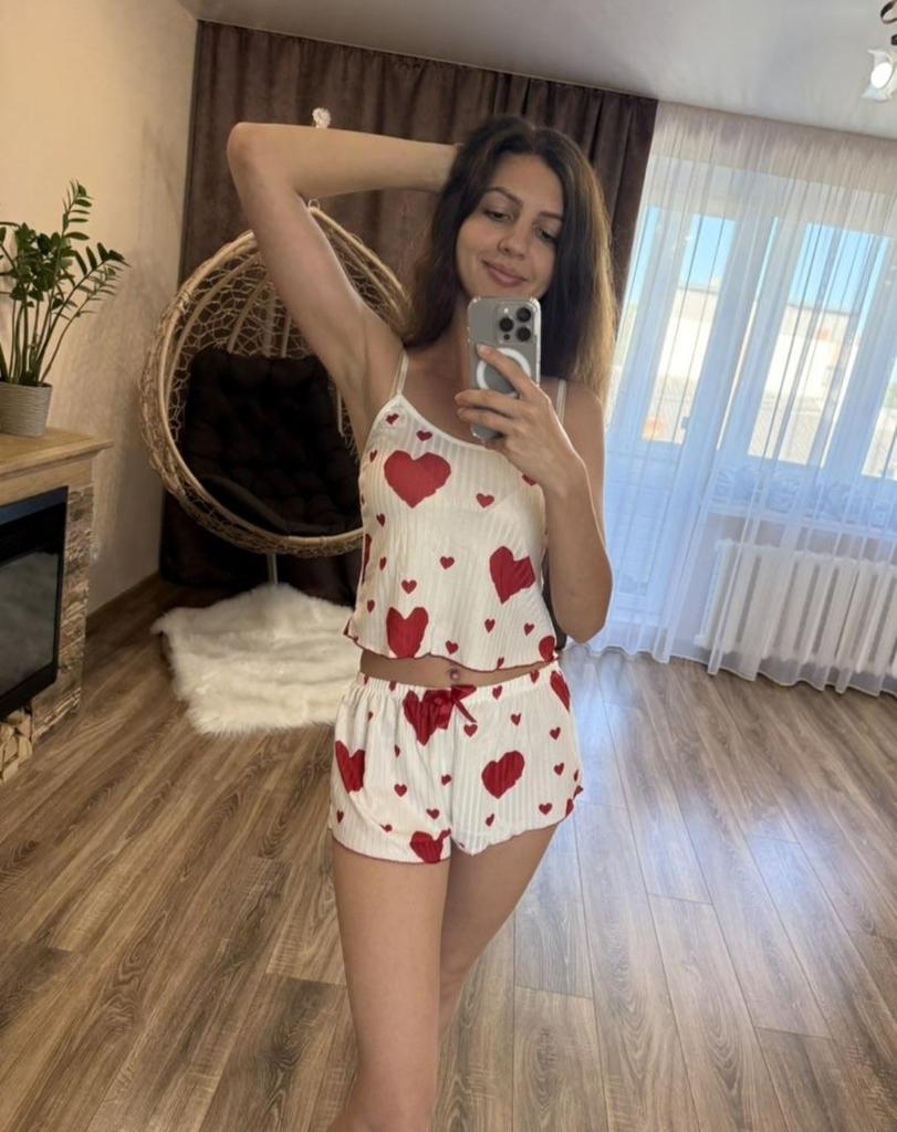 2 Pcs/Set Women Summer Pajamas Suit Adjustable Strap Sleeveless Heart Print Crop Top Shirring Edge High Waist Shorts Bedroom Sleepwear Set