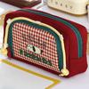 1pcs Lovely Dog Pencil Bag Pen Case, Cute Cartoon Retro Plaid Pattern Large Capacity Storage Pouch for Stationery Student