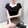 Summer Cotton Tops Streetwear Girl Sexy Square Neck Beading T-shirt Women's Shiny Diamonds Tees