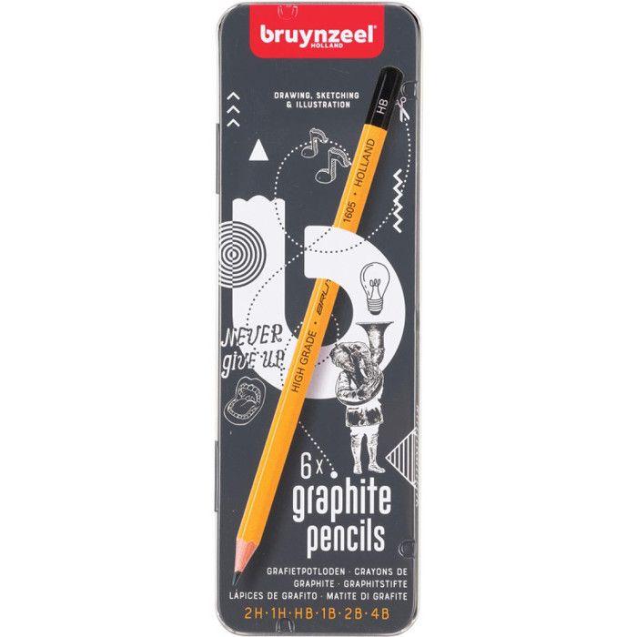 Box of 6 Graphite Pencils - 1H 2H Hb 1B 2B 4B - Bruynzeel
