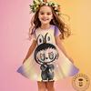 MINISO New Summer Girls Dress Labubu 3D Printed Fashionable Cartoon Cute Princess Girls Clothes Skirt Party Labubu