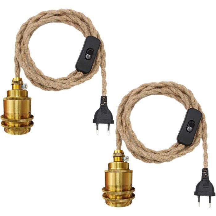 Lustre - Vintage - Corde De Chanvre - Métal Et Céramique - 180 Cm - E27 60W