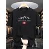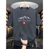 Men's Cotton Casual T-shirt, Round Neck Short Sleeved, Printed with Swiss Mountain Pattern, Regular Style, Slightly Elastic, Suitable for All Seasons