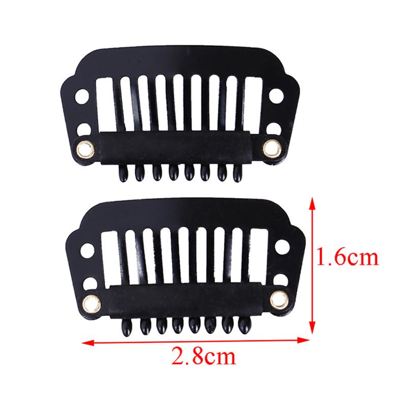 10/100 Toupee Wig Clips Snap Clips W/ Rubber Back Hair Extension Black 8 Teeth