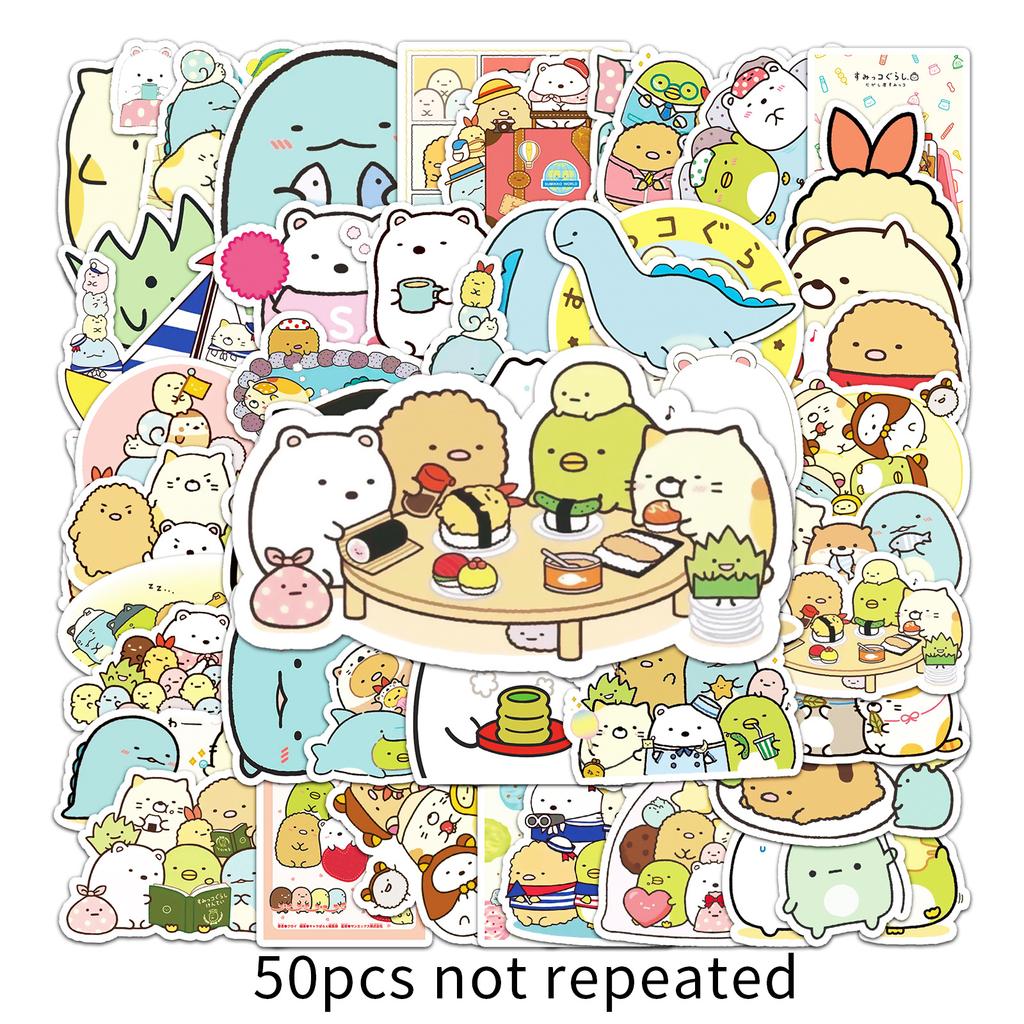 50 Pictures of Cute Creatures In The Corners and Doodle Personalized Cartoon Hand Note Gu Card DIY Skateboard Suitcase Stickers