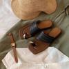 Summer Vacation Style Metal Clip Feet Temperament Square Headed Grass Braided Toe Sandals And Slippers Women's Outer Wear