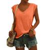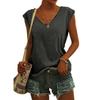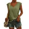 Women's Fashion Solid Color Cap Sleeve V Neck Casual Loose Short Sleeve T-Shirt Top