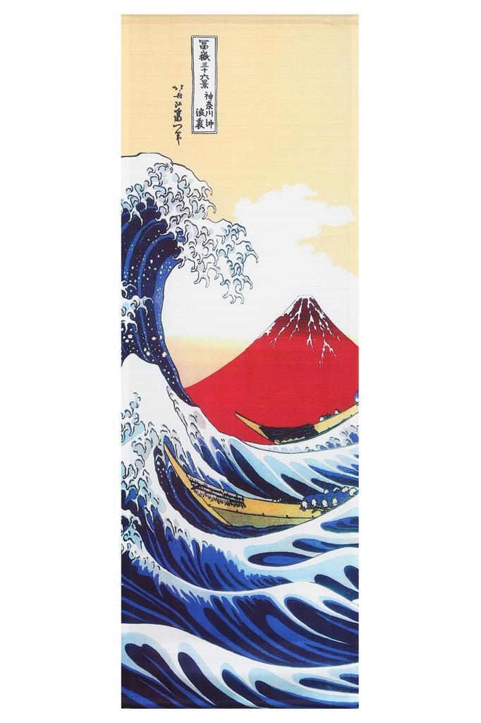 Hanging Scroll for Tokonoma 42 X Height with Modern Red Japanese Pennant Waves and Red (width 120) Thumbtacks, Tapestry, Poster, Mt. Fuji, Interior,