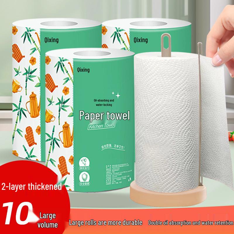 Qixing Bamboo Pulp Kitchen Tissues: Oil & Water Absorbent, 10 Rolls.