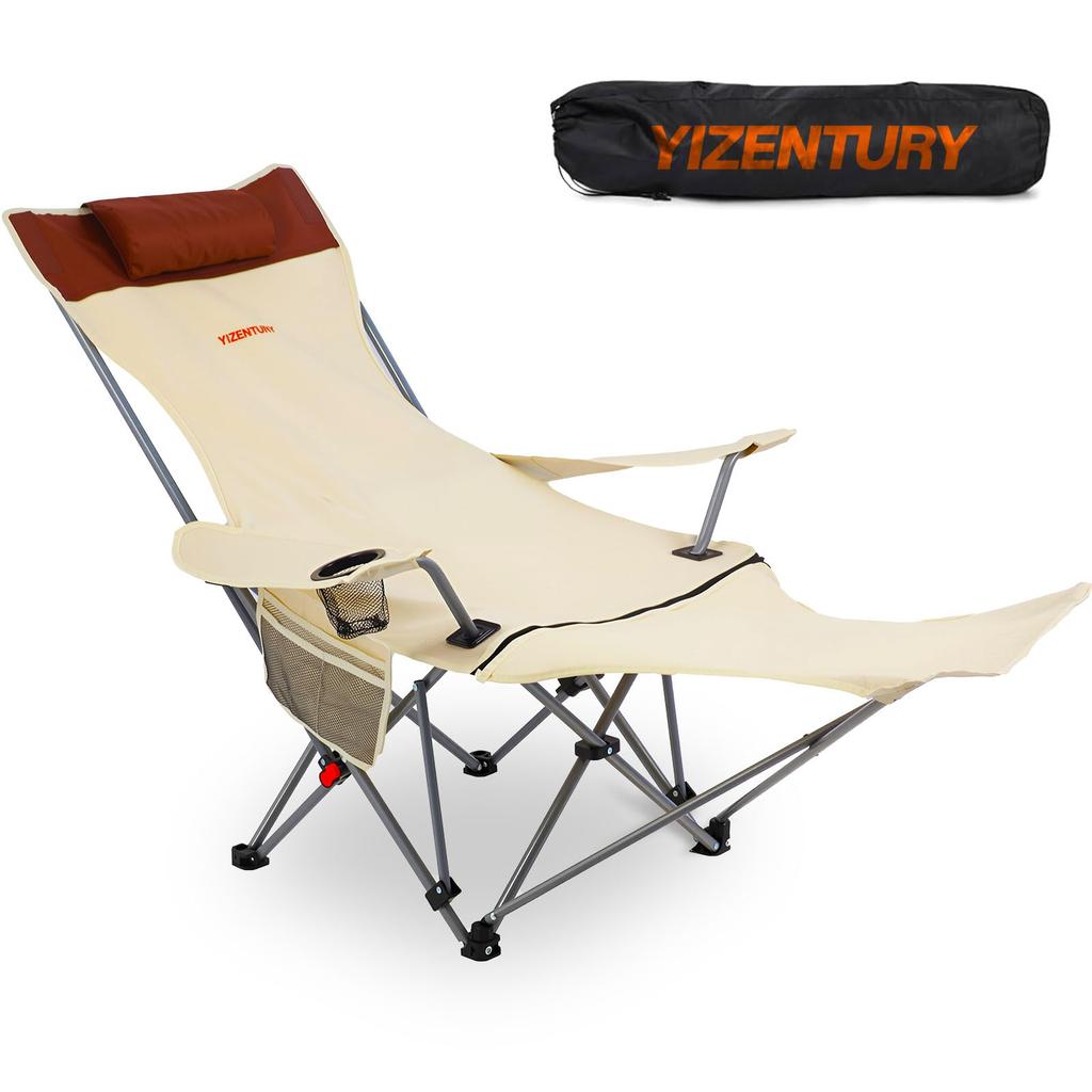 YIZENTURY Reclining Camping Chair with Folding Lounge Load Capacity Adjustable Camping Chair with Pillow Footrest, Chair, 204kg, 150° Backrest,