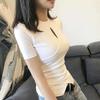 2025 Spring and Summer New White Short-sleeved Round Neck T-shirt for Women Ins Sexy Irregular Hollow Slim Fit Top Trendy