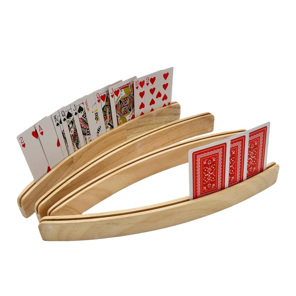 HALSUN Wooden Card Stand, Curved Arch Shape, Card Game, Card Holder, Playing Cards, Set of 4