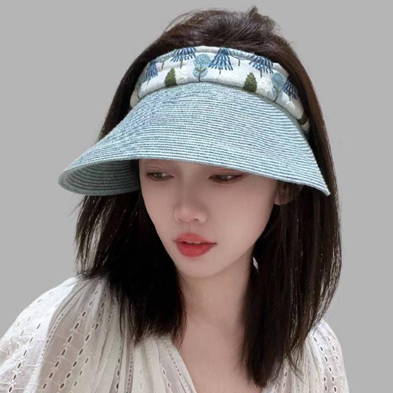 Spring and Summer Empty Top Sun Hat Women's Big Eaves Breathable Sun Protection Straw Hat Straw Woven Literary Headband Sun Hat Outdoor Beach Hat