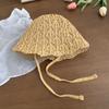 Hollow Knitted Lace-up Fisherman's Hat Children Spring and Summer Sunshade Sunscreen Hat Breathable Face Small Bucket Hat