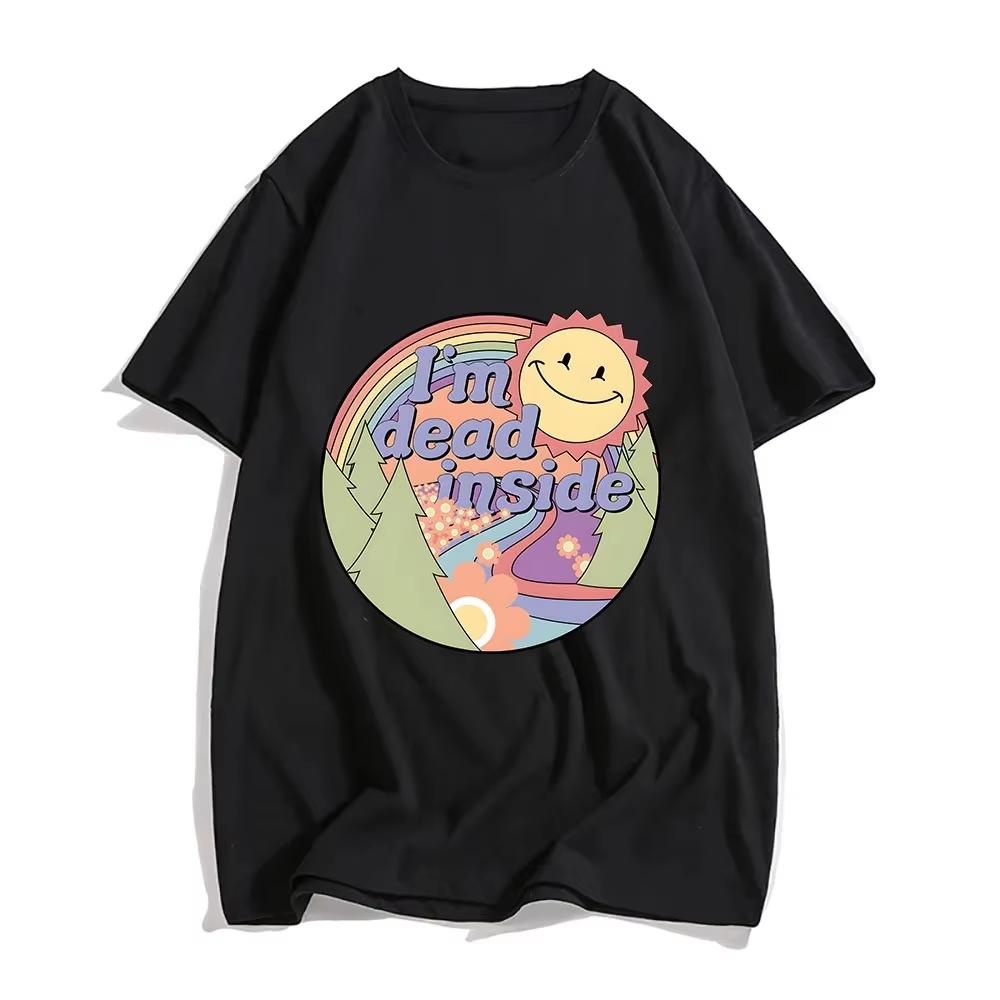 Dead Inside Dolphin Shirts Sun Graphic T-shirt Tees Women Casual T Shirt Summer Short Sleeve Tshirt Graphic T Shirts
