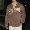 Men's Clothing Autumn Trendy American Vintage Striped Letter Embroidery Shirt Y2K Casual Streetwear Oversized Long Sleeve Tops