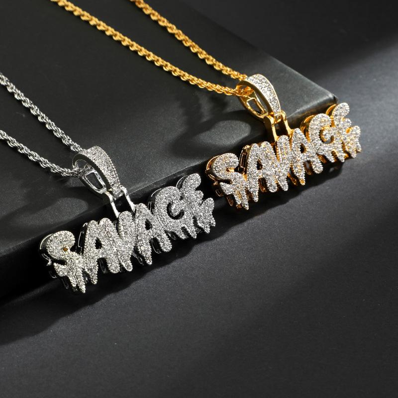 Personalized Street Rap SAVAGE Pendant Set with Sparkling Diamonds Trendy Necklace