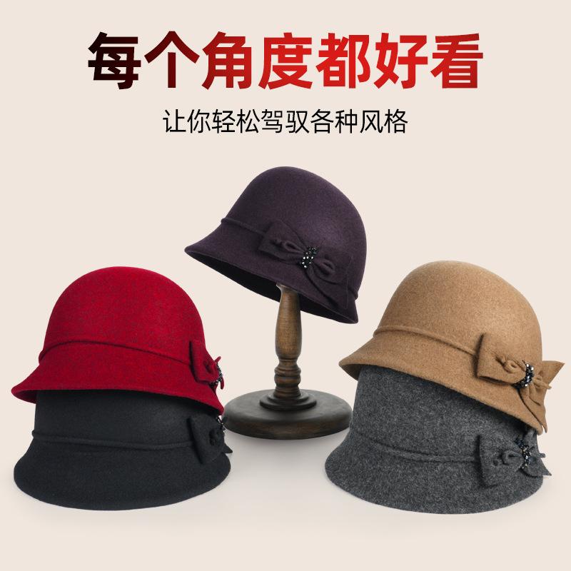 Top Hat Women's Autumn and Winter Wool Retro Woolen Hat Dome Fashion Versatile Basin Hat Outdoor Warm Bucket Hat