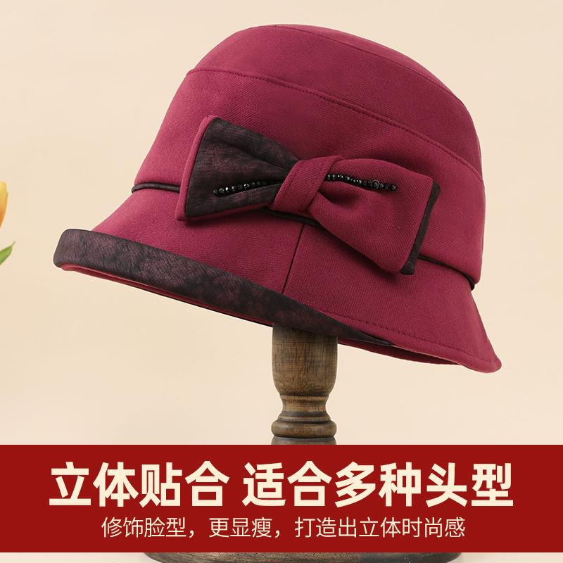 Autumn and Winter Bow Basin Hat Temperament New Retro Hat Mother Hat Warm Temperament Grandma Matching Hat