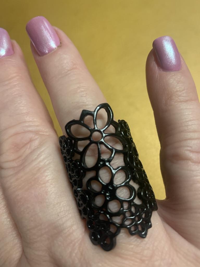Fashion Women Hollow Out Flower Alloy Opening Ring Black and Golden AVE
