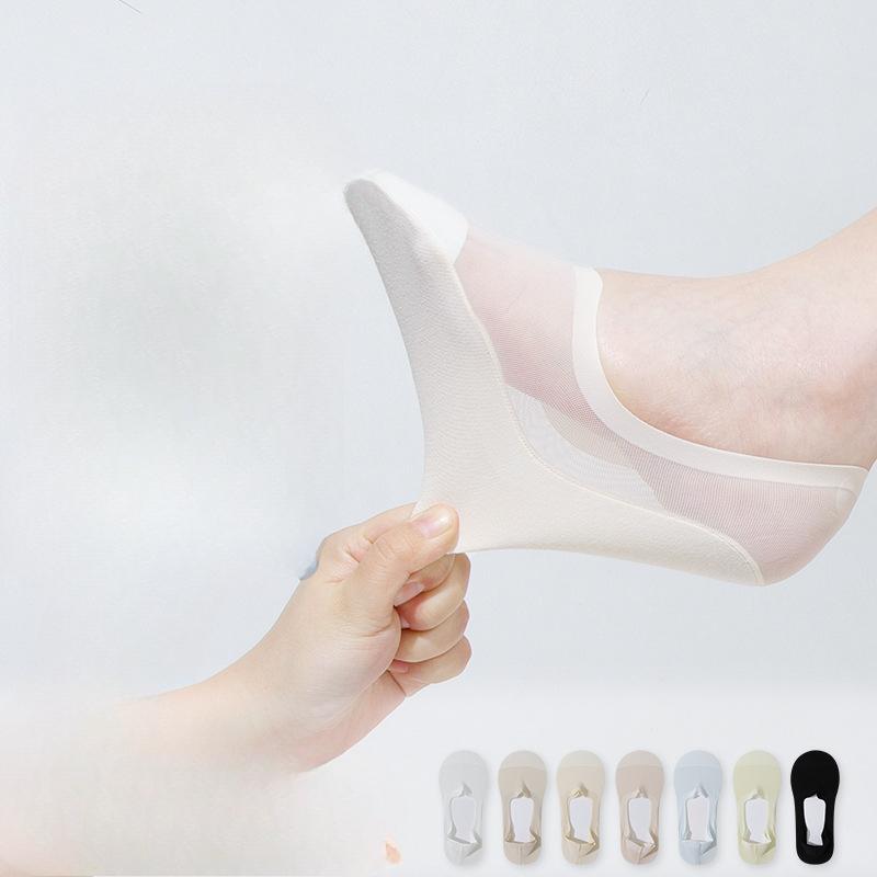 Women's Summer Ultra Thin Cotton Bottom Ice Screen Eye Breathable Invisible Non Drop with Shallow Mouth Silicone Non Slip Boat Socks