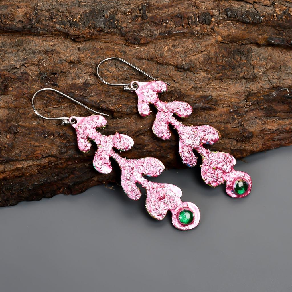 Round Emerald Stone Silver Plated Hook Drop Multi Electroformed Earrings Jewelry V-97