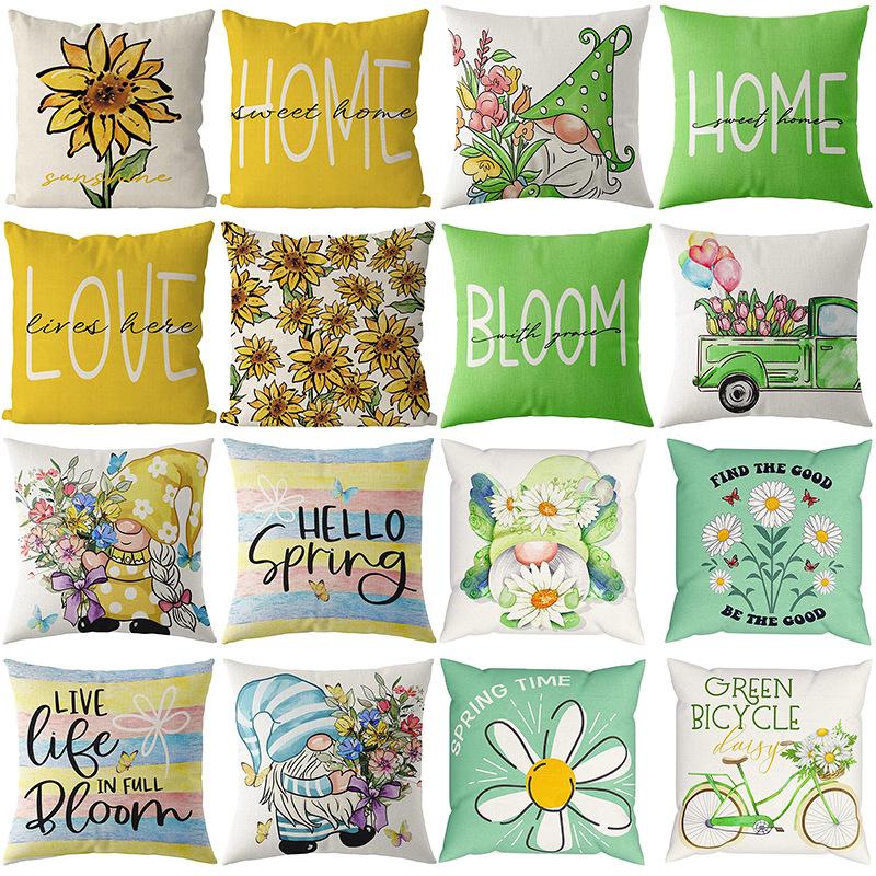 Flowers Daisy Tulip Printed Linen Pillow Case Home Living Room Sofa Bedroom Pillow Case