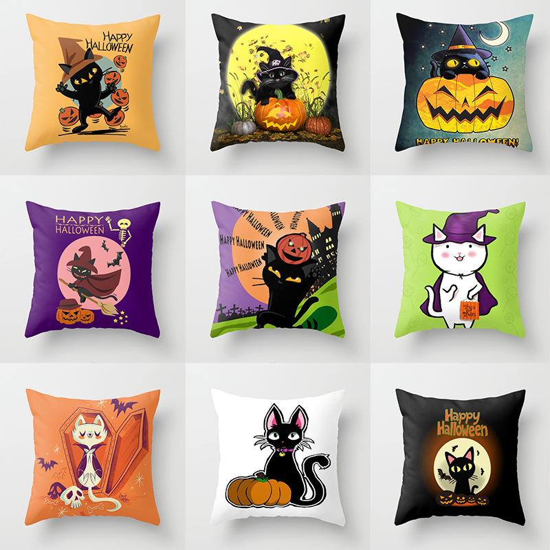 Halloween Cat Pumpkin Peach Velvet Fabric Pillowcase Funny Cartoon Image Decorative Cushion Pillowcase