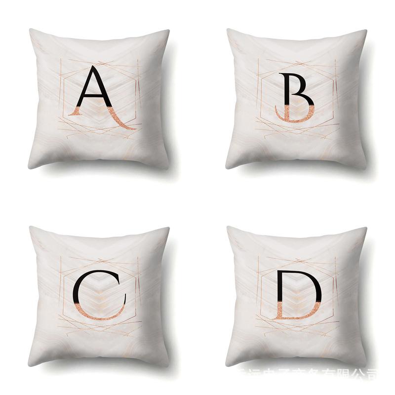 Polyester Pillow Case Black Gold Watercolor Home Furnishing 26 English Letters Printed Waist Cushion Sofa Pillow Case