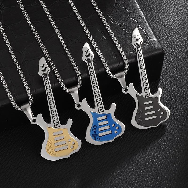 Exquisite High Quality Stainless Steel Electric Guitar Shape Pendant Necklace Men and Women Music Love Rock Jewelry