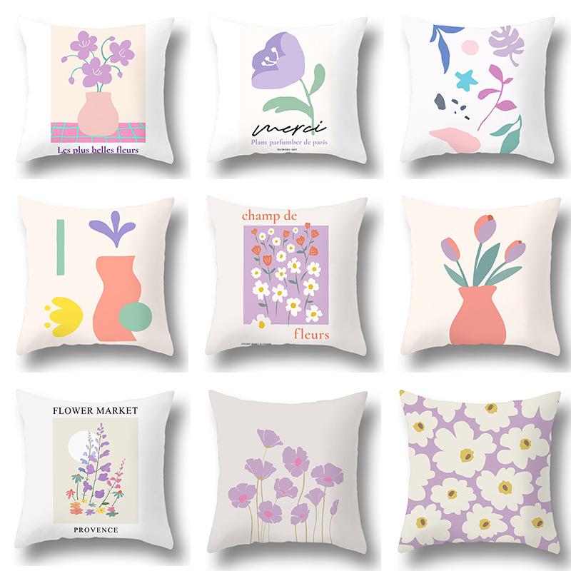 Purple Fresh Flower Pillowcase, Home Sofa, Bedside, Office, Girlish Pink Pillow Cover