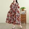 Retro Cotton and Linen Round Neck Short Sleeved Dress, Women's Loose Skirt
