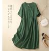 Real Summer New Literary Large Size Loose Solid Color V-neck Short-sleeved Dress Women's Medium and Long Models