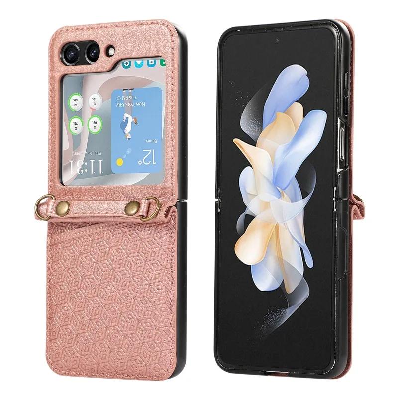 PU Leather Crossbody with Card Holder Phone Case for Samsung Galaxy Z Flip 6 5 4 3 Flip6 Flip5 Flip4 Flip3 5G Protective Cover