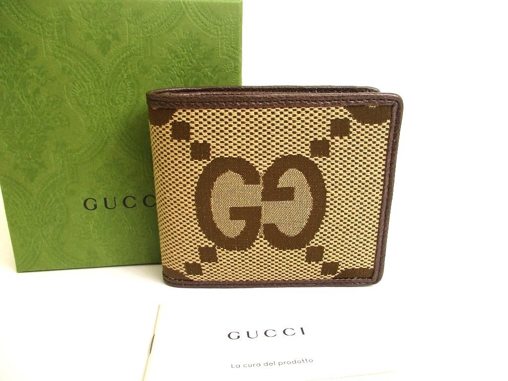 Product : GUCCI JUmbo GG Canvas Brown Leather Bifold Bill Wallet #805