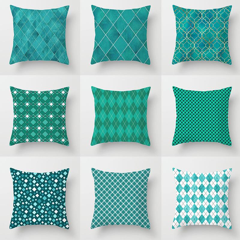 Retro Green Geometric Pillow Case Home Sofa Pillow Cushion Cover Tatami