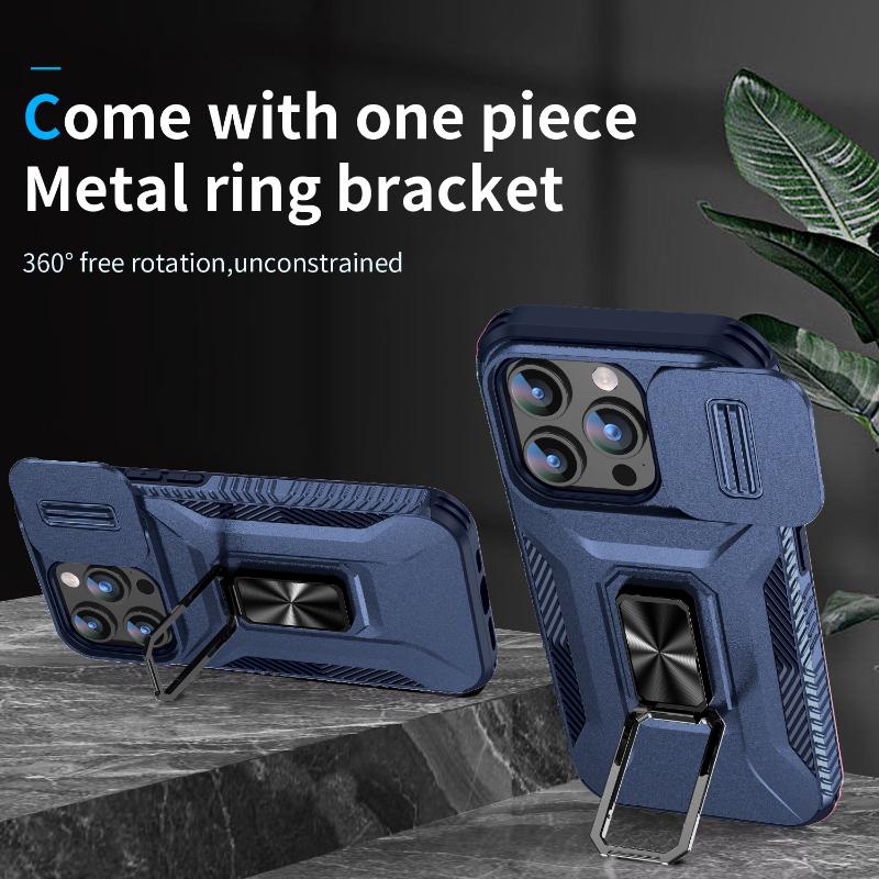 360 ° Rotating Metal Car Bracket Ring Phone Case For iPhone 16 Pro Max 14 11 12 13 15 Pro Max Camera Push Pull Protection Cover