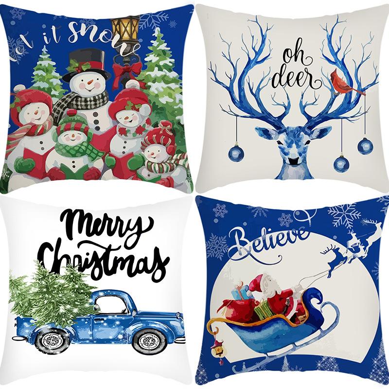 New Christmas Pillowcase Linen Print Snowman Santa Claus House Decoration Festive Pillowcase