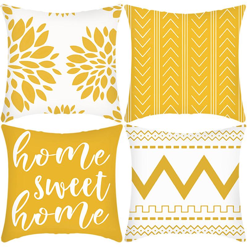 New Green Plant Yellow Sun Flower Letter Print Pillow Home Sofa Cushion Cover