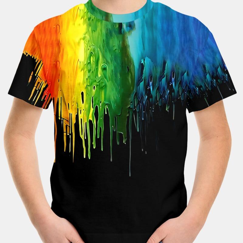 Black Casual Short Sleeved 3D Digital Printed T-shirt for Children Shirt