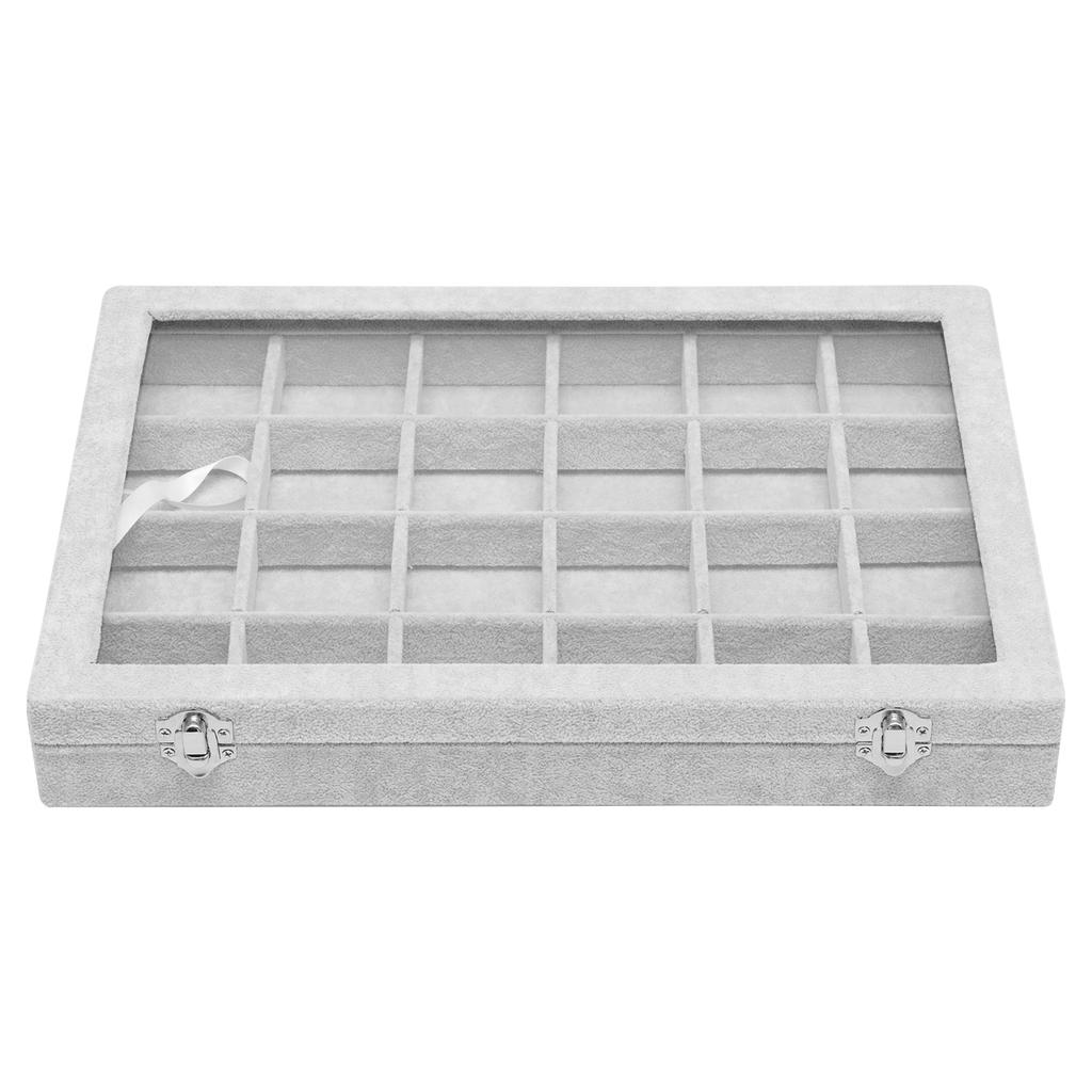 24 Grid Rock Display Case With Metal Lock Clear Glass Lid Multipurpose Gemstone Collection Case Display Organizer