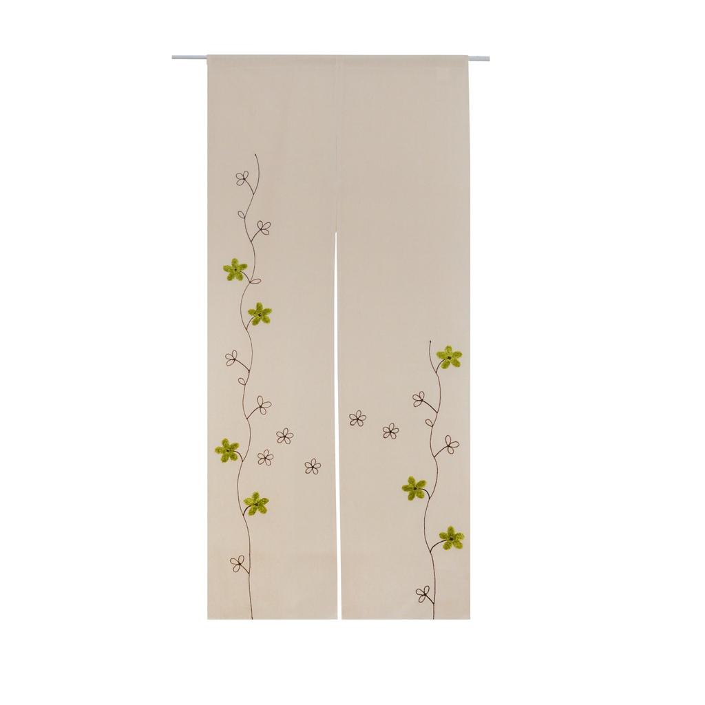 YURLISA Summer and Winter Stylish Floral Embroidered Curtain Width 68cm X Length Spring, Linen-Style (Green Embroidery, 150cm)