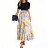 Women's casual fashion sexy hip-wrapped printed dress, with high waist skirt, highlights the slender waist, lengthens the leg line, makes you look taller and slimmer. A-line skirt, refreshing and Suitable for all body shapes, highlighting the beauty of women. The skirt is full and the upper body effect is elegant. Very suitable for vacation photos.