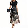 Women's Fashion Casual Belt Short Sleeve Round Neck Floral Stitching Elegant Temperament Dress