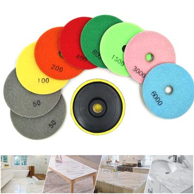 7Pcs Diamond Polishing Pads Wet Dry Polish Kit Grit 1Pc Backer Grinding Granite Marble 4in