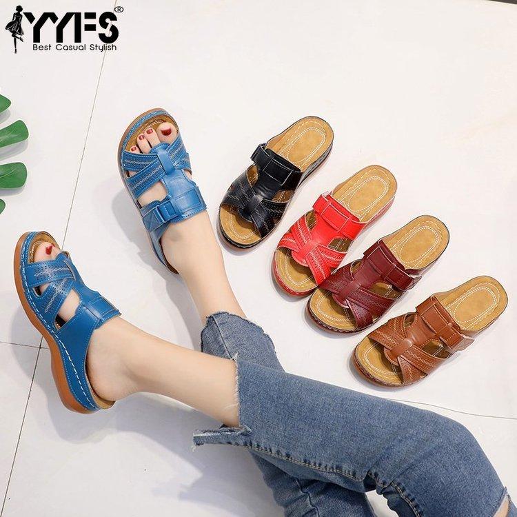 Women Premium Orthopedic Sandals Open Toe Ladies Slippers Buckle Strap Vintage Anti-slip Breathable Summer Size 35-44
